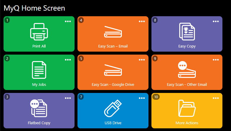 All Lawton staff members are assigned a printer pin number. This pin is used at any of our Kyocera printers. Once used the printer screen will look like the image below.